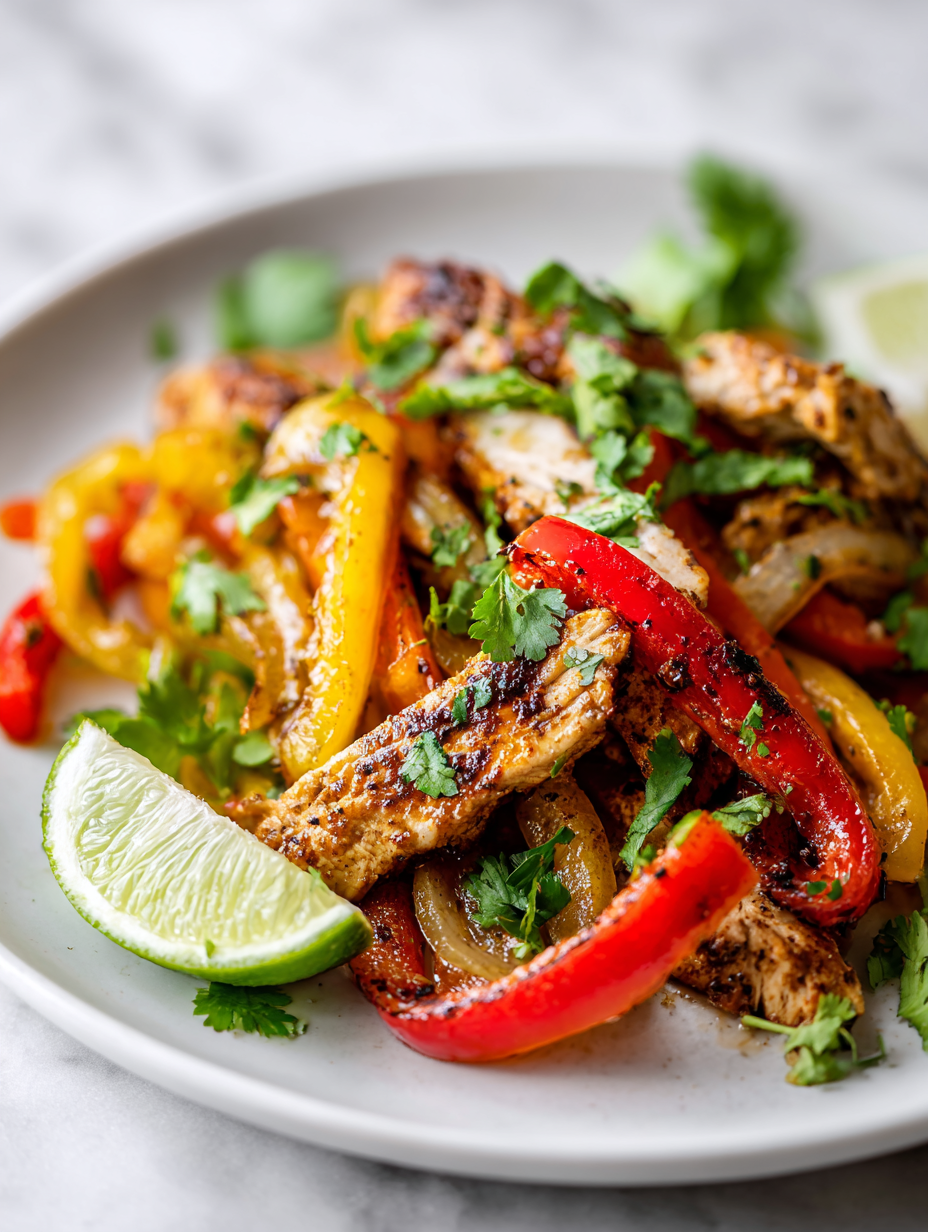 - Prep ingredients: Thinly slice chicken breasts, julienne peppers and onions, squeeze fresh lime, and measure spices. Keep everything within arm’s reach.