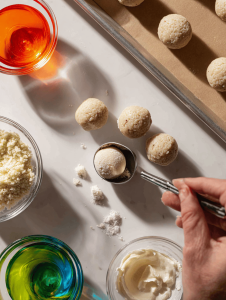- Scoop out small portions and roll them into smooth, round balls about the size of a golf ball.