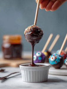 - Decorate the coated cake pops immediately with icing, sprinkles, edible glitter, or draw faces with edible ink, creating spooky monsters and fun details.