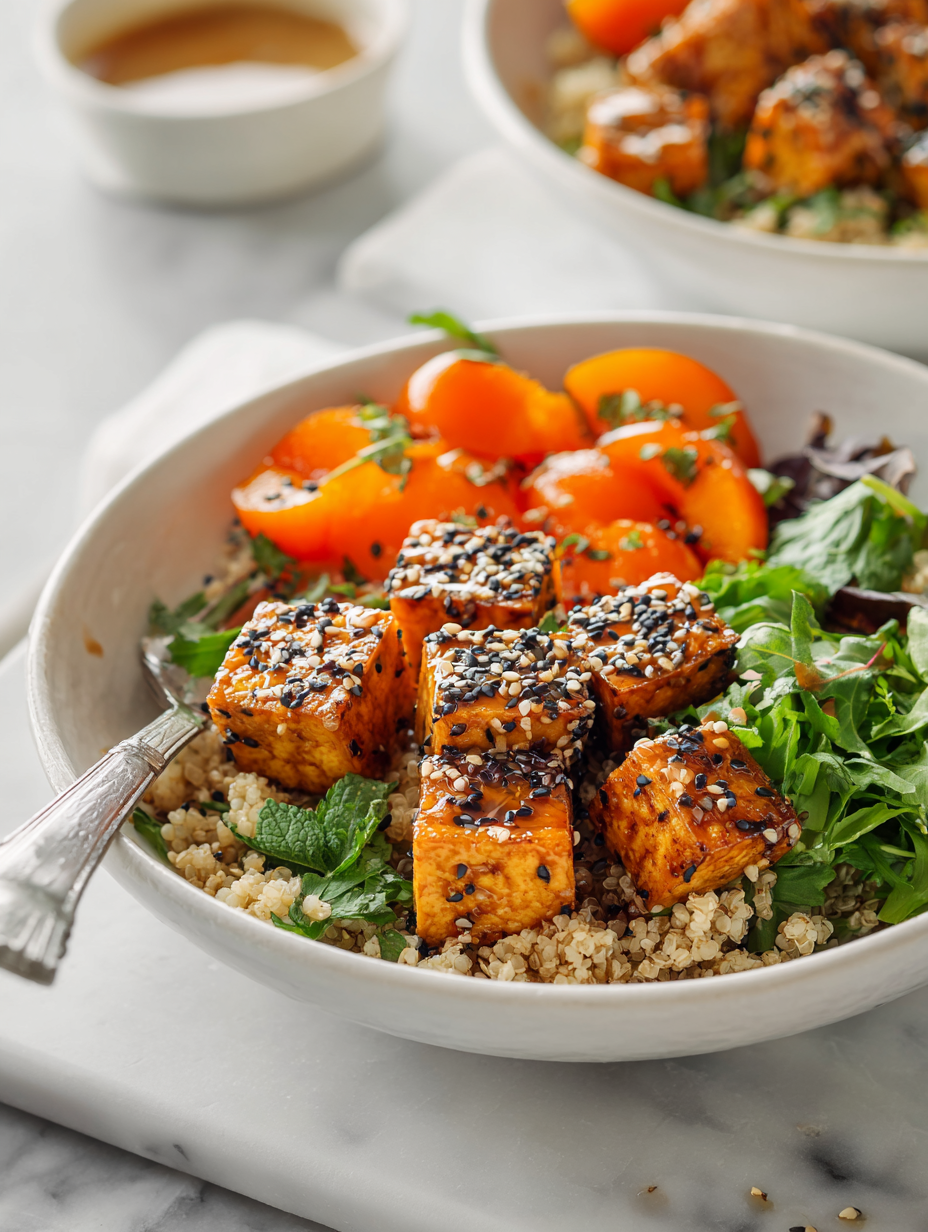 This Sesame Apricot Tofu Bowl is a little experiment that turned into a weekday staple. I was craving something bright and different—something that would make me smile with every bite. The unexpected sweetness of dried apricots, paired with the nutty aroma of toasted sesame, feels like a cozy hug on a busy night.
