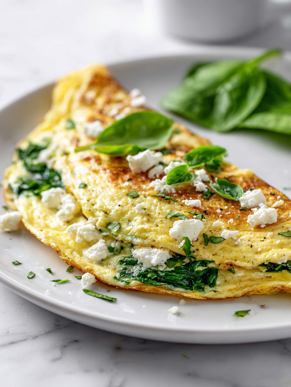 • This omelette came about during a hectic week when I craved something quick, yet satisfying enough to kickstart my morning with a calm focus. I remember rummaging through the fridge and finding a bunch of fresh spinach and some crumbly feta left from a previous salad. The idea of combining these into a fluffy eggshell hug felt just right—simple, honest, and nourishing.