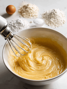 Step 4: Gradually mix in flour, baking powder, and a pinch of salt.