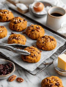 - Gently fold in the chopped toasted pecans and dried cranberries, distributing them evenly throughout the dough for texture and bursts of flavor.