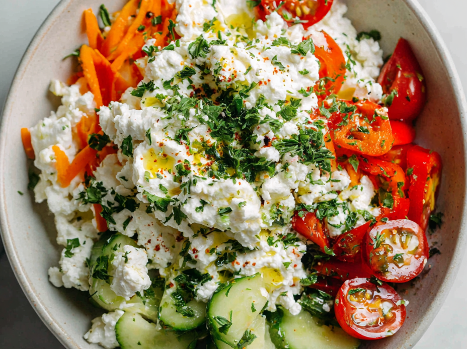 - This recipe was born out of a lazy Sunday morning craving. I had some cottage cheese left in the fridge and a handful of colorful veggies that needed using up. Instead of just assembling a salad, I wanted something more filling but still fresh and quick. That’s how this bowl came together—simple ingredients, big flavor, no fuss.
