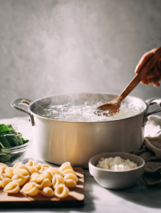 Step 2: Cook the pasta shells in boiling salted water for about 8 minutes until just al dente. Drain and set aside.