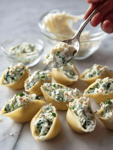 - Using a spoon or piping bag, carefully stuff each shell with the cheese mixture, pressing gently to fill completely without overstuffing.