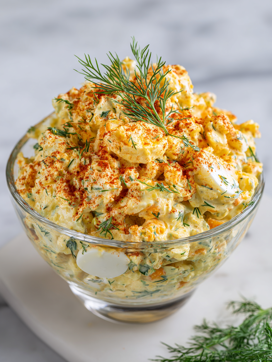 - Refrigerate the assembled egg salad for 15-20 minutes to allow flavors to meld. Serve chilled, garnished with extra herbs or a dash of smoked paprika for a decorative touch.