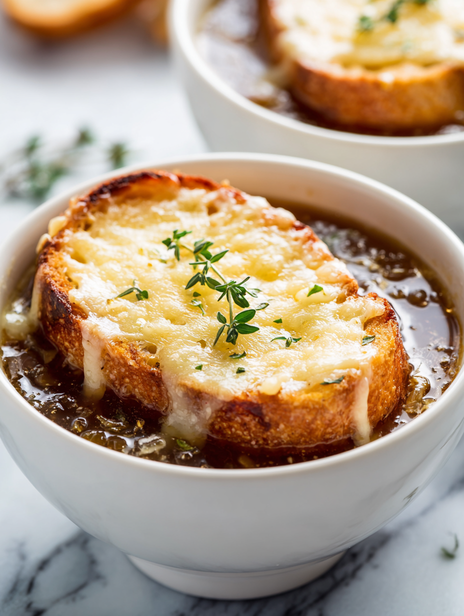 - French bread: Toasted slices are essential—they soak up the broth and add crunch. A baguette is classic, but sourdough slices give a tangy counterpoint. Don’t skip the toasting; soggy bread ruins the texture.