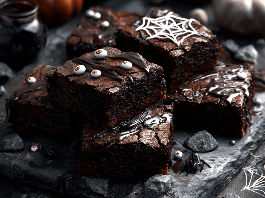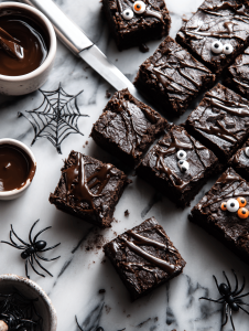 - Once cooled, cut the brownies into squares and decorate with spooky toppings like eyes, spider webs, or drizzled melted chocolate to add a haunting touch.