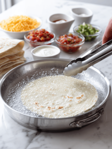 - Ensure the pan isn’t too hot to avoid burning the tortillas.