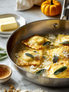 - Gently toss the cooked ravioli in the sage-infused browned butter, coating them evenly and warming through. Serve immediately, garnished with extra sage leaves if desired.
