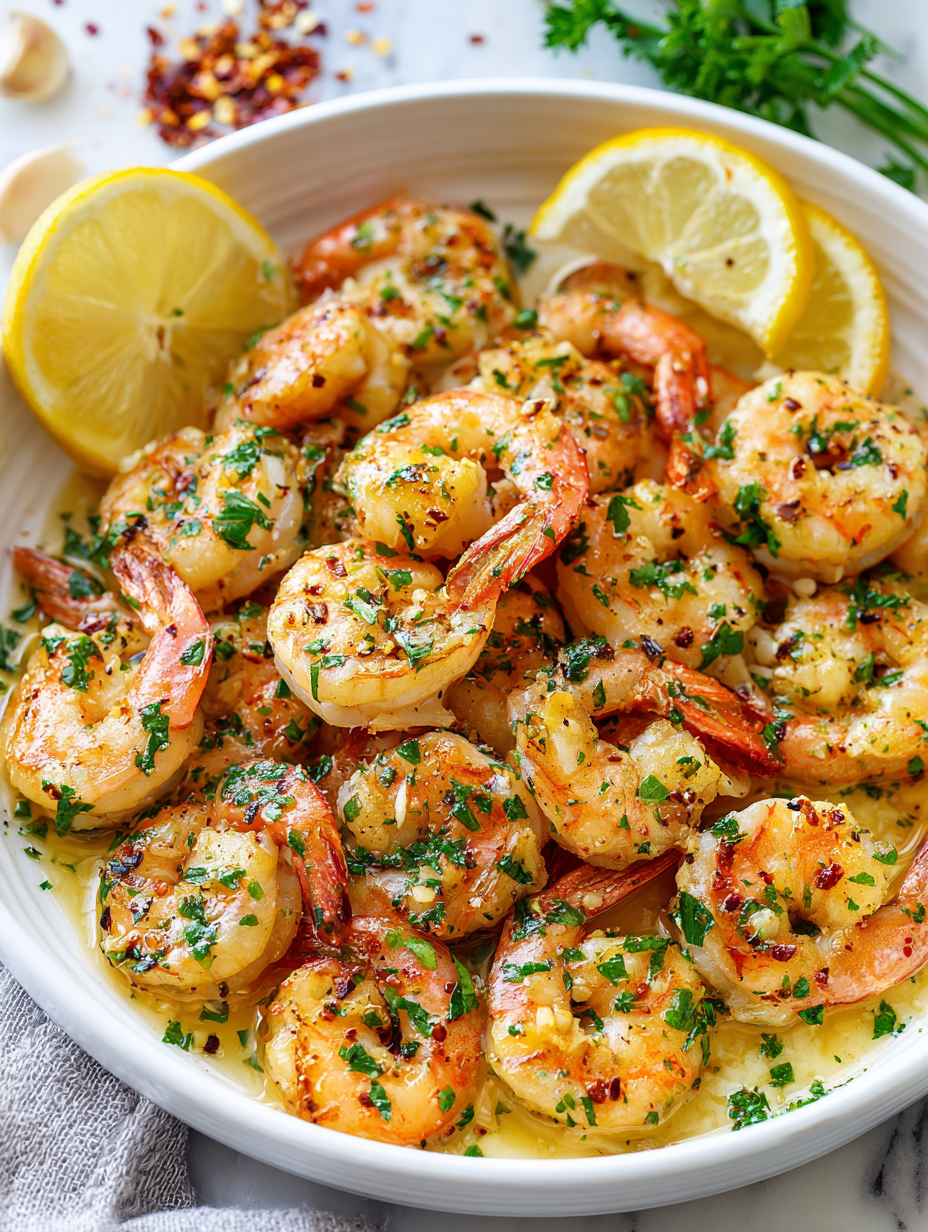 - Finish with chopped parsley and a pinch of red pepper flakes. Toss to coat the shrimp evenly. The dish should shimmer with a buttery, lemony glaze and smell intoxicating—garlic, citrus, and herbs in harmony.