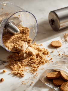 3. Mix the biscuit crumbs with melted butter until evenly coated and the mixture resembles wet sand.