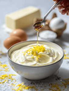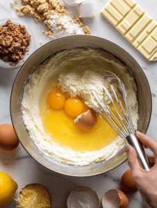 Step 5: Add eggs, one at a time, mixing slowly. Incorporate vanilla extract and lemon zest for brightness.