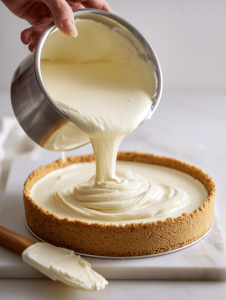 9. Pour the filling over the cooled crust, smoothing the top with a spatula.