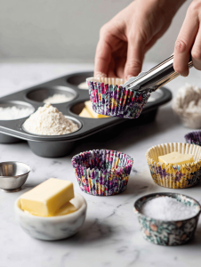 • Muffin tin & liners: Shape and contain your cupcakes during baking.