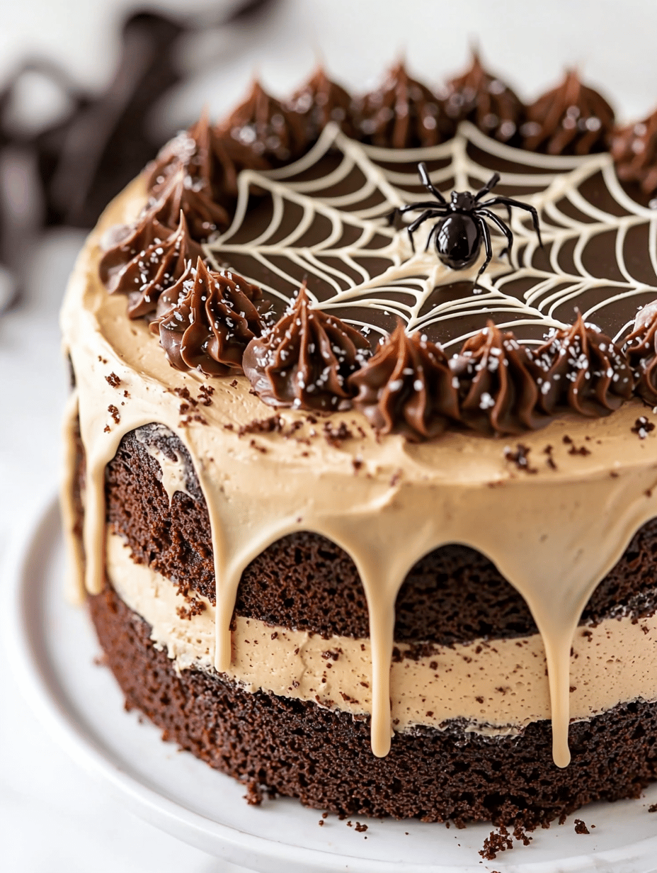In the end, this Spider Web Cake isn’t just a Halloween dessert. It’s a reminder that a little chaos in the kitchen can create something truly memorable. Each web and swirl echoes the imperfect charm of the holiday, making every bite more special. As the leaves turn and the nights grow cool, this cake adds just the right touch of spooky sophistication to any celebration.
