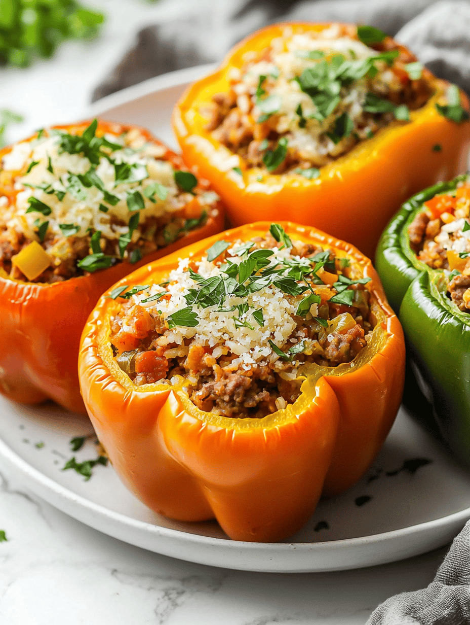 - Serve the stuffed peppers warm, optionally topping with extra herbs or a drizzle of olive oil for presentation.