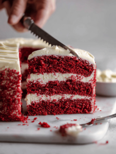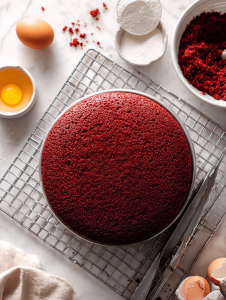 - Enjoy your beautifully baked red velvet cake, perfect for celebrating or simply indulging in a splash of color and flavor.