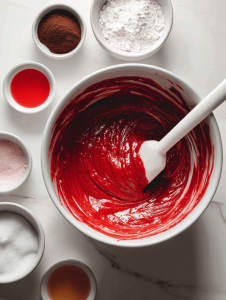 - Red food coloring: Vivid and essential; opt for gel for intense color without thinning batter.