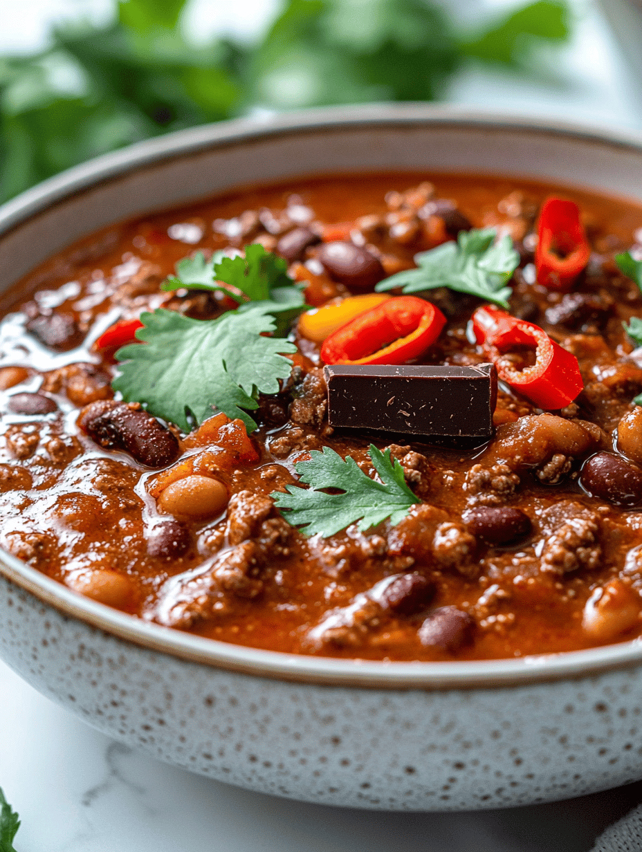 Today’s chili isn’t just about heat; it’s about creating a complex flavor story with ingredients you already have. I love how a splash of dark chocolate at the end adds an indulgent depth that surprises every time. Perfect for cozy weekends or when you need a dish that sparks nostalgic comfort.