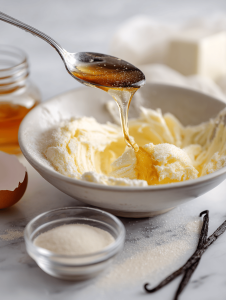 - Add the egg and vanilla extract to the creamed mixture, then beat until just combined, creating a smooth, shiny batter.