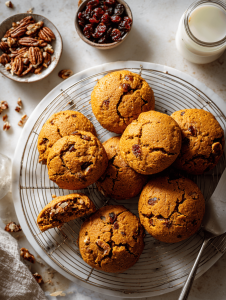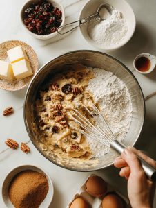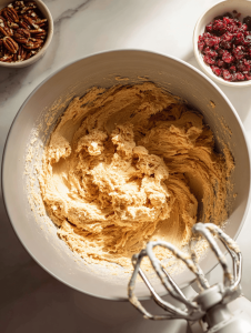 - Gently fold in the chopped toasted pecans and dried cranberries, distributing them evenly throughout the dough for texture and bursts of flavor.
