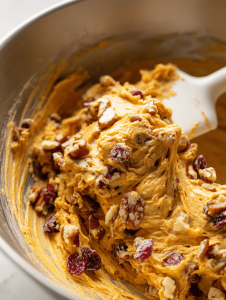 Step 6: Fold in chopped pecans and dried cranberries for texture and bursts of flavor.