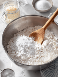 Step 3: Mix your batter: combine flour, sugar, cocoa powder, baking powder, and a pinch of salt.